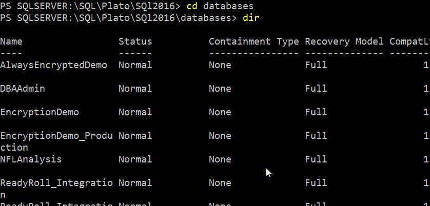 cd sqlserver:\sql\localhost\default\databases