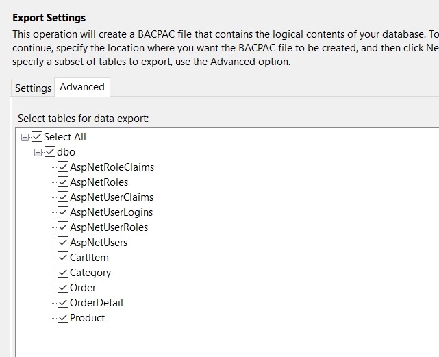 This post shows how you can create a BACPPAC file (with the extension .bacpac) from SSMS.