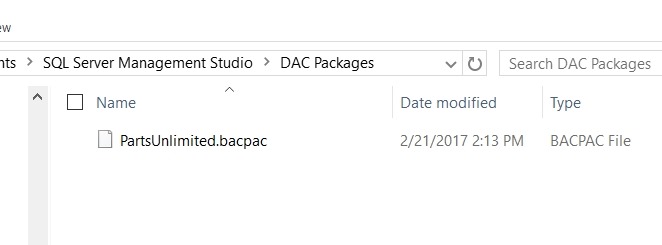 That’s it. If I look in the location, I’ll see my BACPAC file.