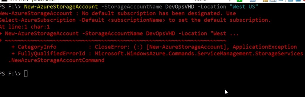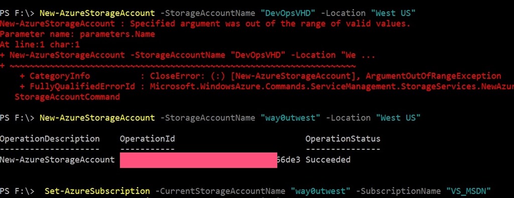 So, why doesn’t my creation of the storage account work? I should really read error messages. The issue is Select-AzureSubscription fails because I need Select-AzureRMSubscription.