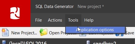Fortunately, I have Python 2.7 on my system. I clicked “Tools” and “Application Options” in SQL Data Generator.