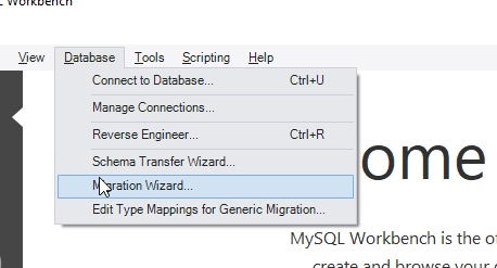 The next step was to start the Migration Wizard. This is under the Database menu.