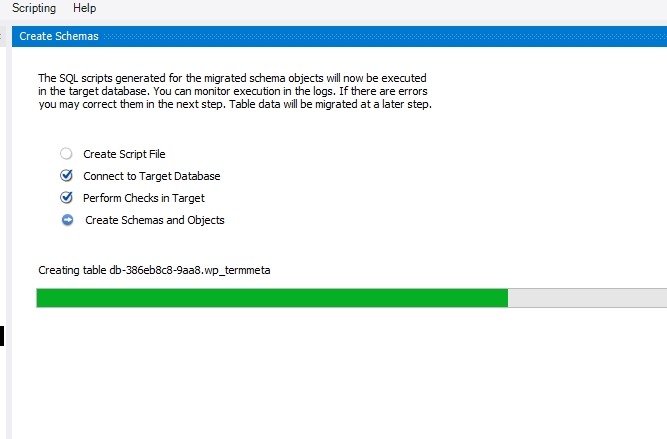 After verifying connections, I selected everything. Since this is a WordPress site, it’s a fairly small schema and set of objects.