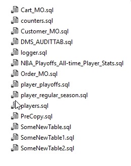 Note that all of the tables were exported to the same file. If I opened that file, here’s a snippet of the code. I get a header, and then each table’s code put together as single batch.