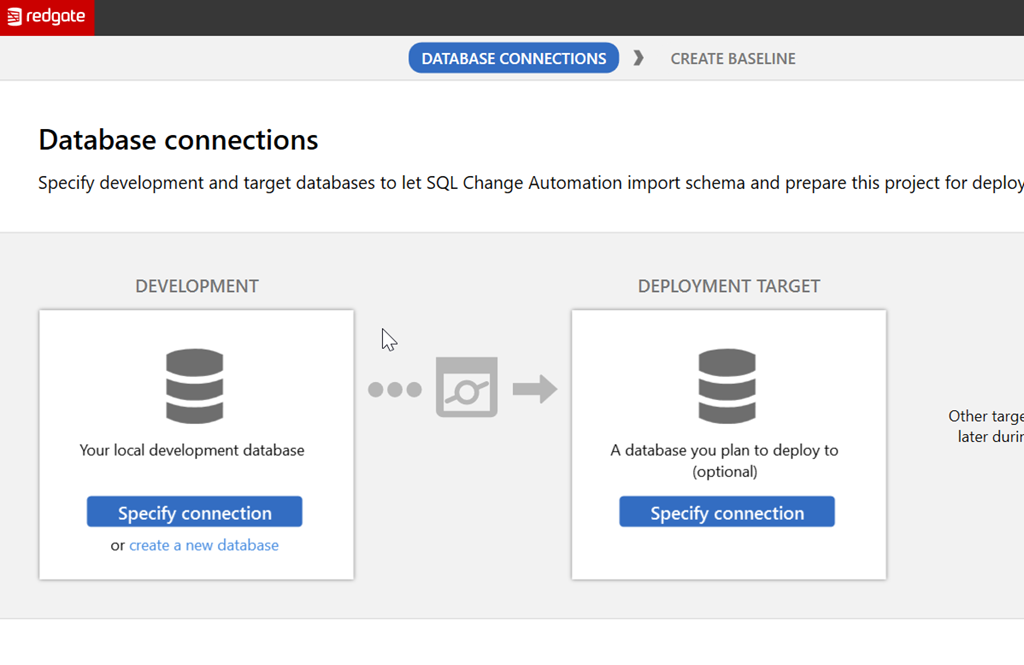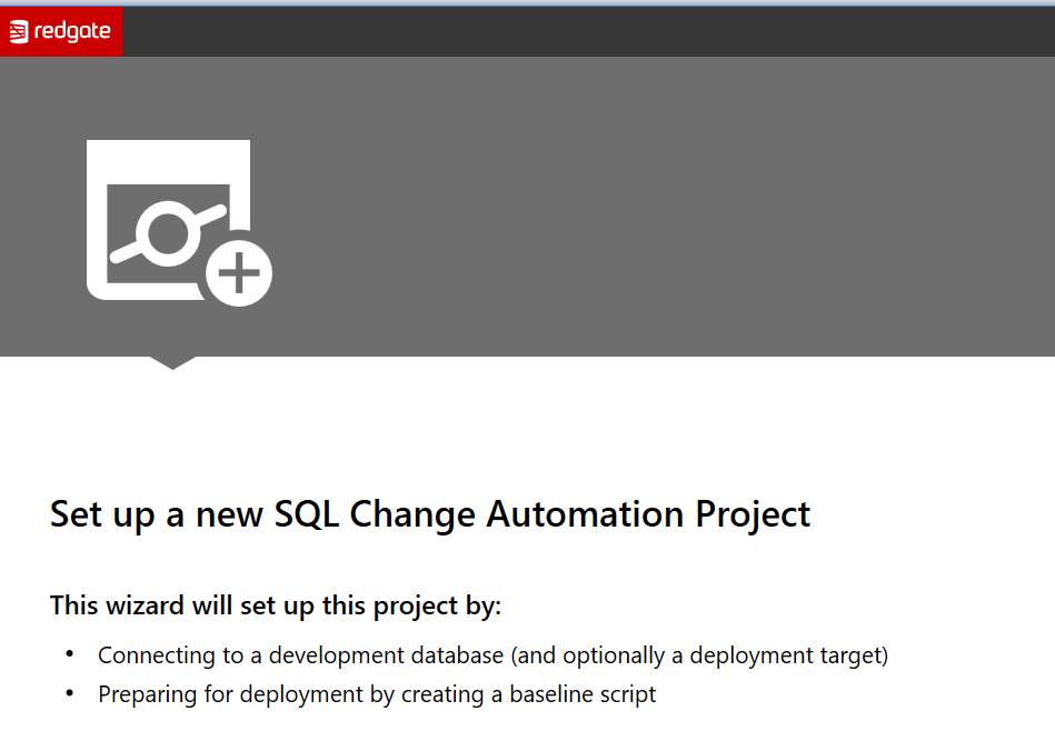 This works the same as the old ReadyRoll system, though there have been lots of updates to the product this year. The setup is a little better, giving you some help getting started. We have the obligatory welcome screen: