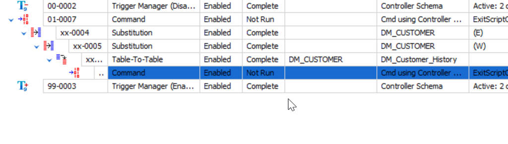 Once I’m done, I make this a child of the other rules. This ensures that the substitutions run on the main table, then are synchronized to the history table.