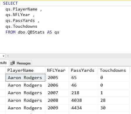I have some data in a table. This is NFL data, and a sample of it looks like this: