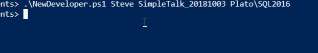 As part of some presentation work, I wanted to demonstrate some onboarding of new developers. To that end, as part of a demo, I wanted to build a script that would take a few parameters and generate some SQL Provision databases for development. The idea is that an admin can have a script here to set up a developer with a database for a project with SQL Provision. I imagine this would be part of a script that also cloned a repo, set up a project, etc.