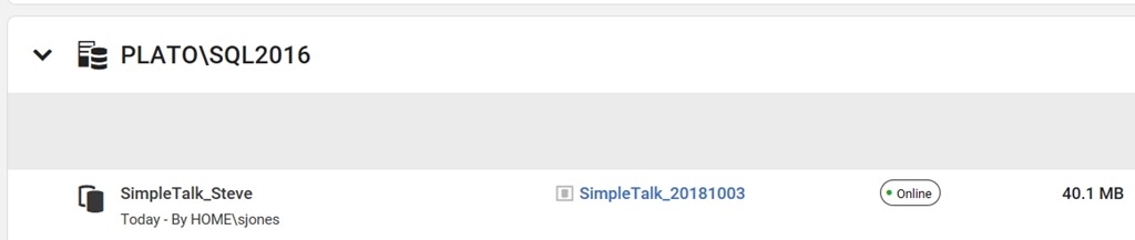 Using formats like this, I can easily strip off the beginning part of the name (SimpleTalk) and then append my _developer to the end. For me, this means I’d get a database named: SimpleTalk_Steve