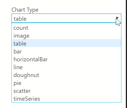 Instead of this, I’ll expand the Chart Type drop down. This gives me a list of a number of items I can choose. For this insight, I’ll use the table type.