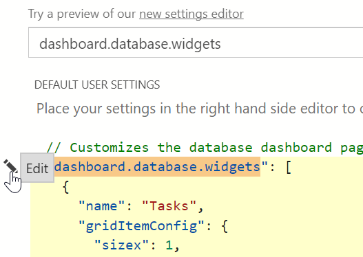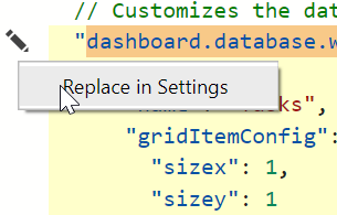 If I put the cursor in the upper left, I’ll get an edit item. I can pick this and I’ll get one of two items. If I’ve never customized anything, I’ll get the “copy to user settings” option. If I have, I get the “Replace in settings” item.