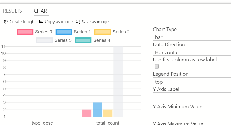 I saved this as a file under my Documents folder. Once I had this, I ran the query and in the results, I clicked on the Chart item to the right of the results.