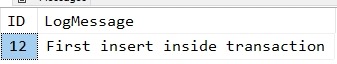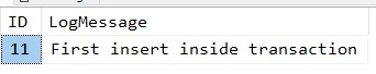 INSERT dbo.TransLogger (LogMessage) VALUES ('First insert inside transaction')