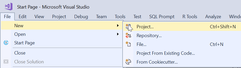 If you’re an application developer, you are familiar with building new projects. If you’re not, you can probably figure this out, but I’ll just describe and explain the process. In the File Menu, we start our PoC with a File New.