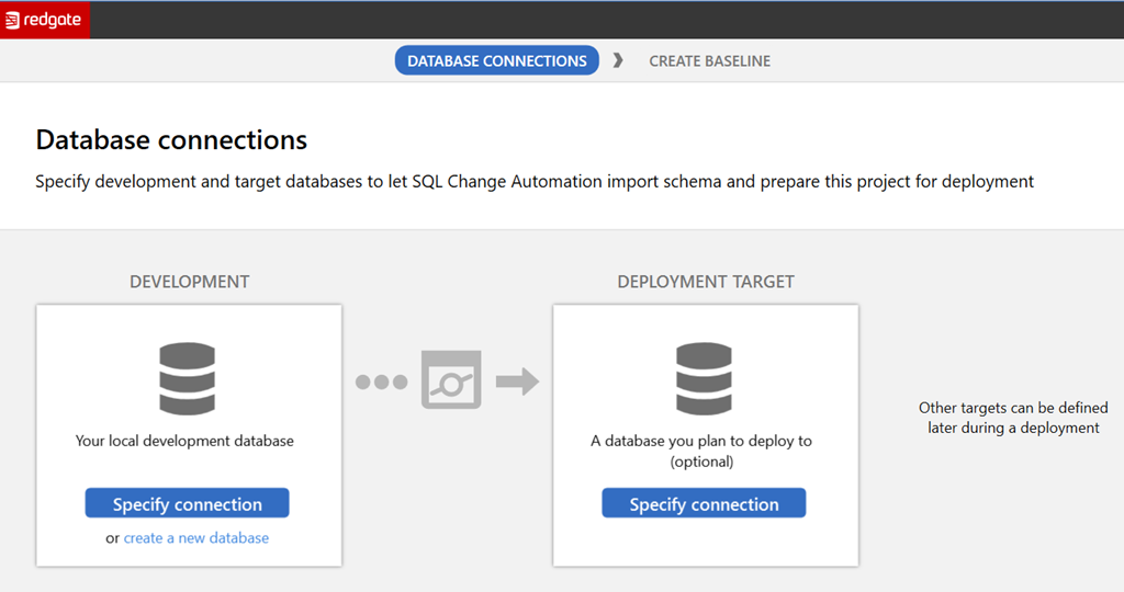 This is a reminder that we didn’t create a target, but that’s OK. We can do that later, especially since this is a new project. There is no baseline, which would be an initial script to rebuild the database to its current state. Right now our baseline is nothing.