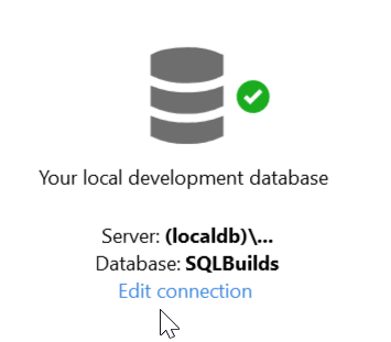 The default database is the name of the project. The default instance is a LocalDB instance, which is an in process SQL Server. This is named (loadldb)\Projectsv13 in the current (Aug 2018) versions of SCA. I’ll leave this alone, but the Edit Connection link would allow you to pick a new instance and database.