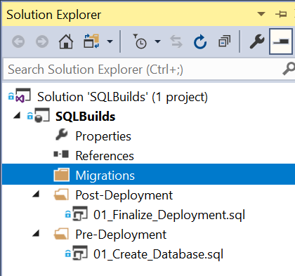 At this point, I can begin development. Migrations scripts I create will appear under the Migrations folder and if necessary, I can edit the pre and post scripts. Or add more scripts here. The default scripts are in place already, but I can change them as needed.
