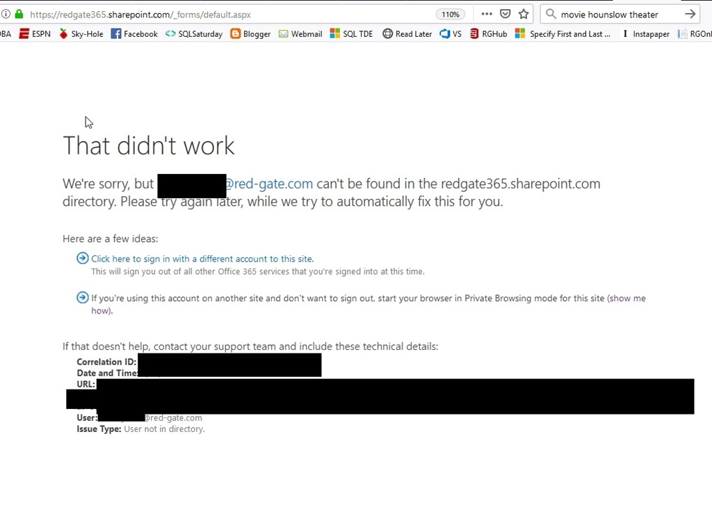 What’s weird is that if I go to a URL, like our info site, or the IT site, I get the option to enter an account. When I do, it goes to the organizational signin.