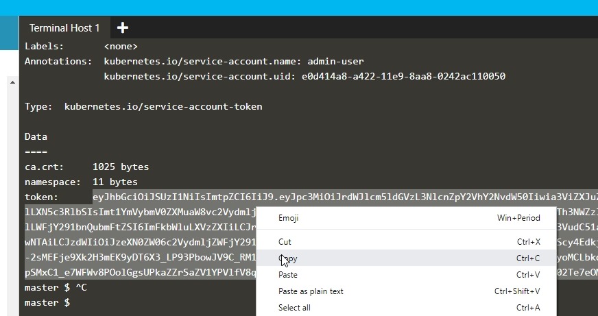 One thing to be aware of when trying to access the dashboard is that the token copy needs to be with a right click. At least for me, CTRL+C didn’t work.