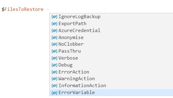 The warnings aren’t a big deal, and in fact, have no bearing on my script. At least, not on this script. Since I needed to give this to a customer as a PoC item, I didn’t want any weird warnings. As a result, I needed to suppress these. A little intellisense in VS Code gave me a hint, but what value to use for the parameter?