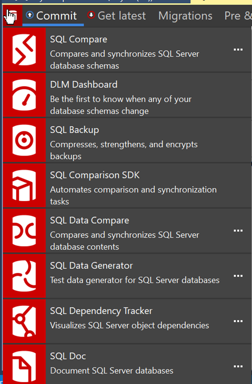 In SQL Source Control, there is a Redgate icon in the upper left corner. When I’m working in SSMS, I can quickly switch over to the SQL Source Control (SOC) tab and click the icon.