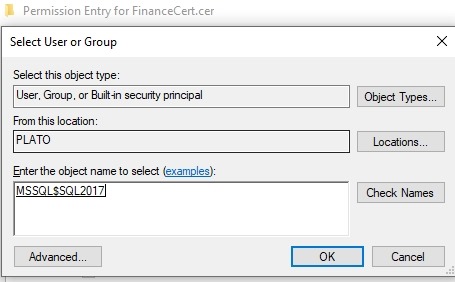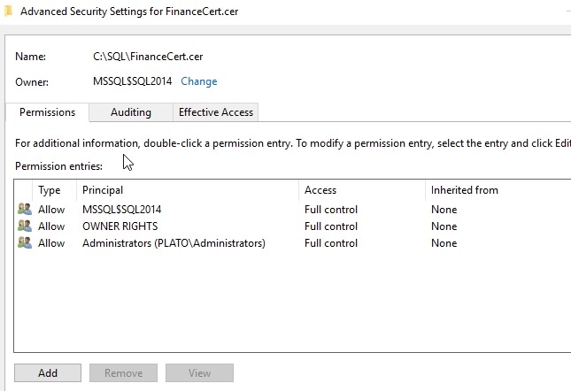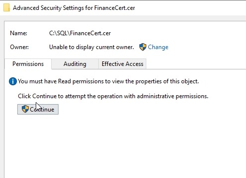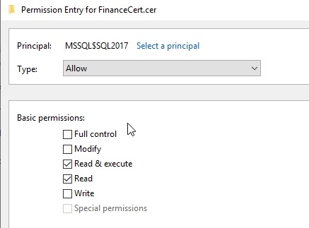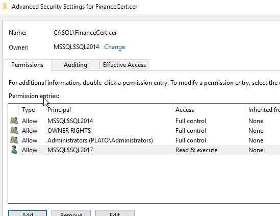 That’s it. Now my SQL2017 instance can access the backup and create the certificate.