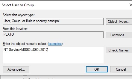 For a local account, I need to give the “NT Service” prefix to my account, despite this not being shown as part of the service account settings.