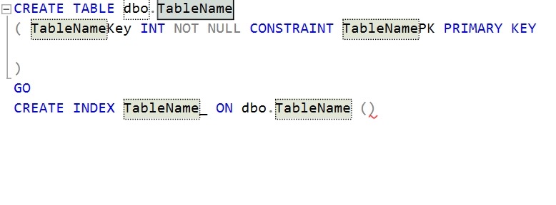 CREATE INDEX $TableName$_ ON dbo.$TableName$ ()