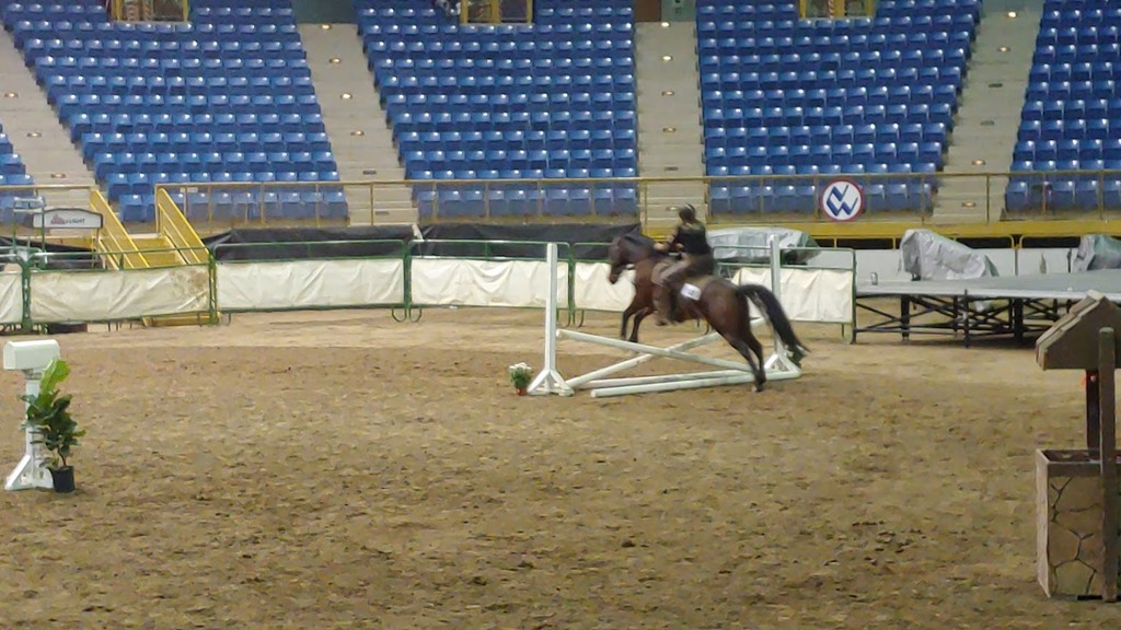 I changed and raced downtown to the Stock Show, where my wife was competing. It’s an obstacle course, which is hard for horses. They don’t like change, and little things, like a tarp on the ground or a moving plant, are scary. At least she made the jump.