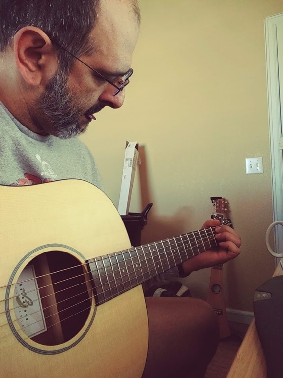 Back to my routine. Up at 8 and starting guitar. 45 minutes of blues lessons.