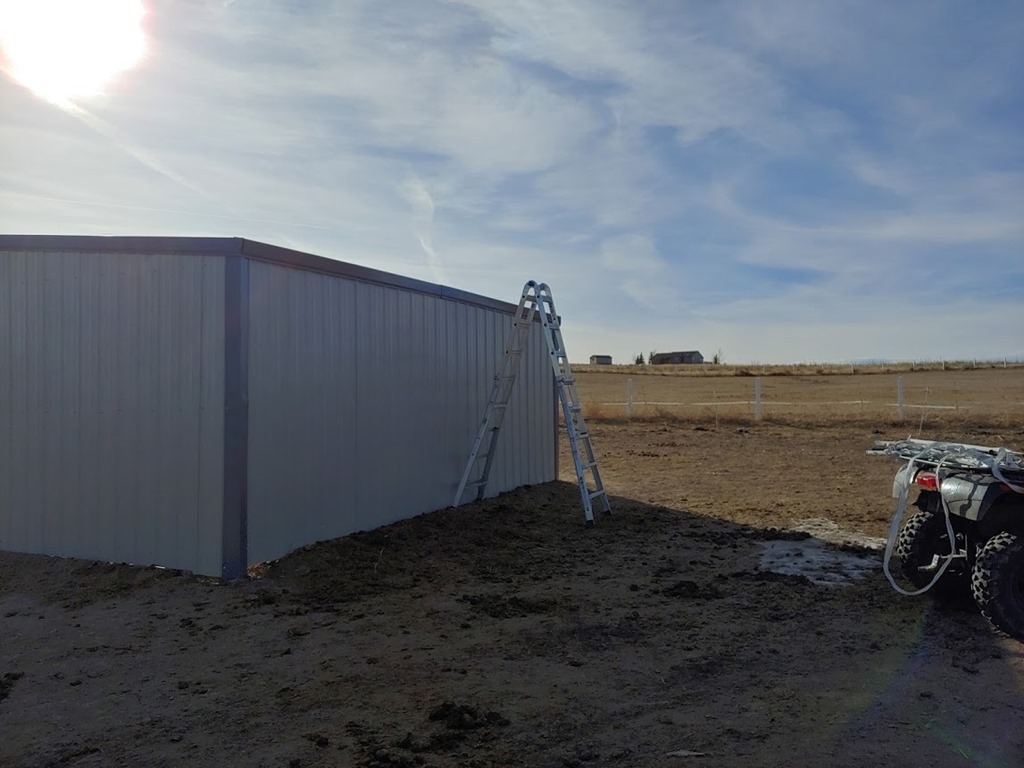As I went around, I realized it was a really nice day. Warm (50F) and not much wind. I also circled the loafing shed a few times as I fed, and realized I needed to get that done. After feeding, I packed up some equipment, loaded the tractor with the generator, and headed out to do the trim and roof.