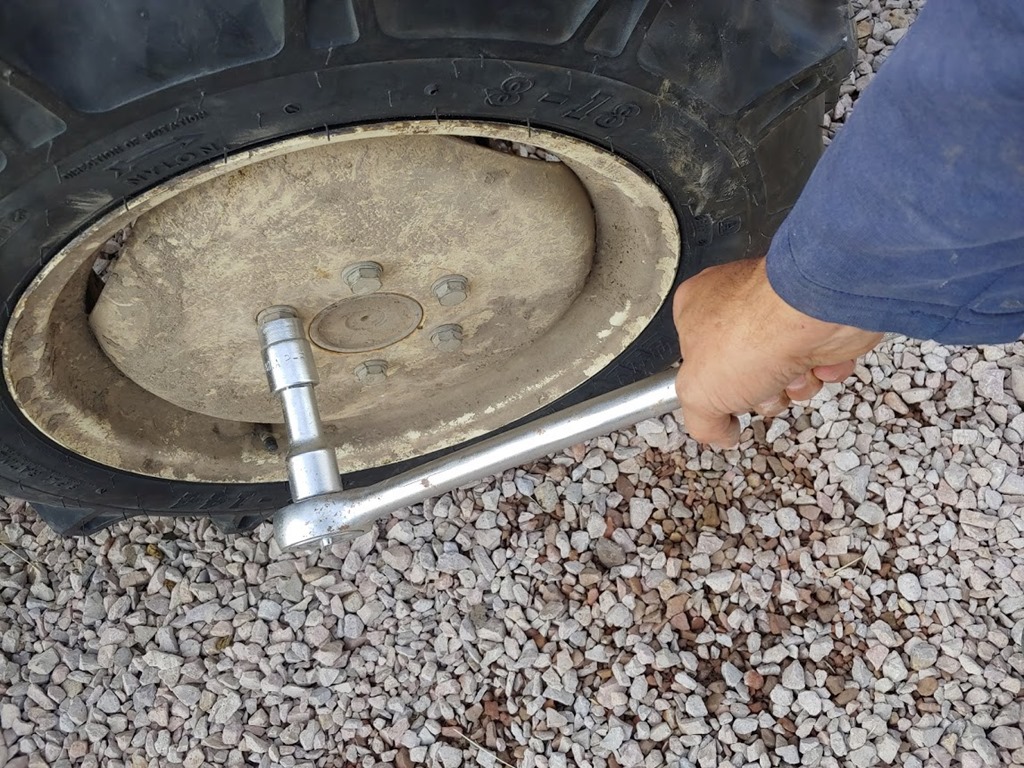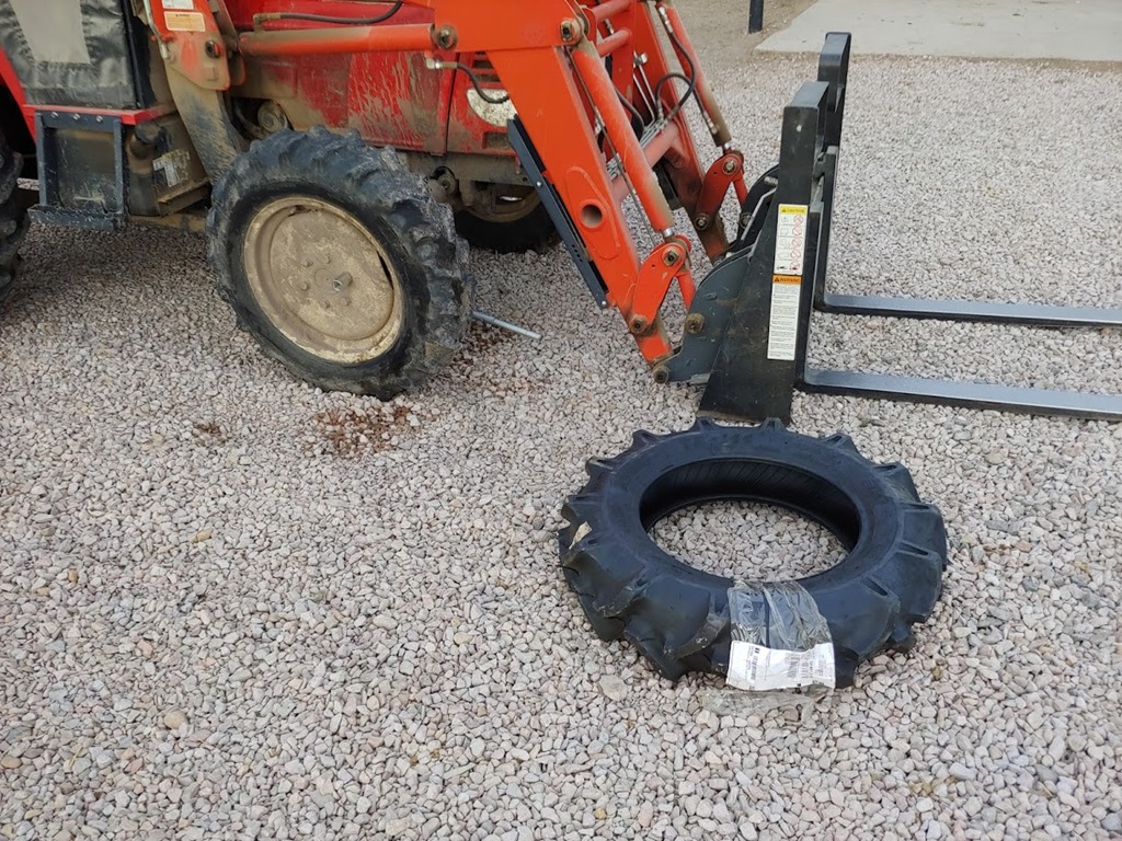 One of the tractor tires had blown out a few years ago and I replaced it. Now the other one is constantly leaking air and it’s a bit cracked. I’ve been meaning to get this done, but since it’s in use every other day as part of the ranch, it’s hard to time.