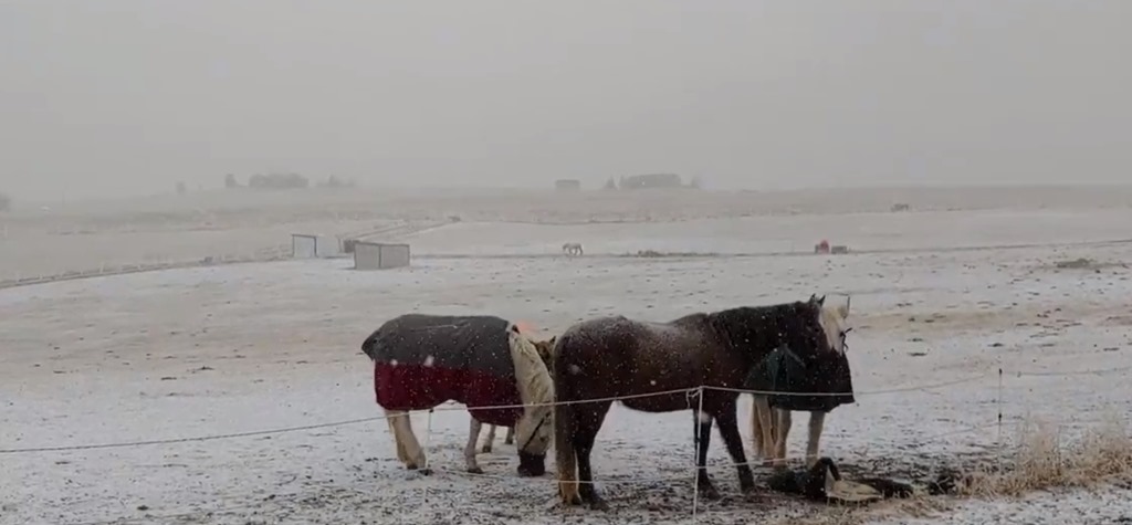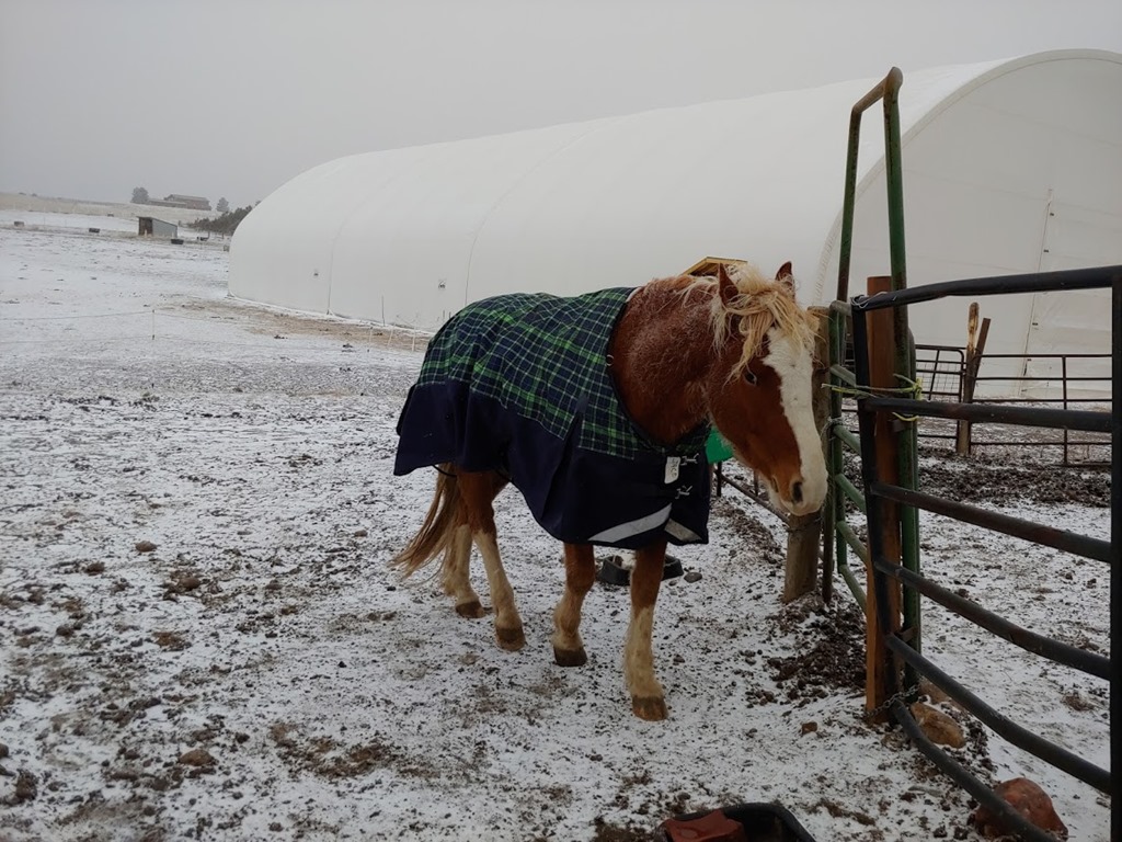 An hour later, it was coming down. We had to get out there and blanket horses. Not hard, but hard work. And it takes time, as we have 20 on the property. We want to get it done quickly, before they get too covered with snow and wet, just like humans. It’s supposed to get down to single digits tonight.