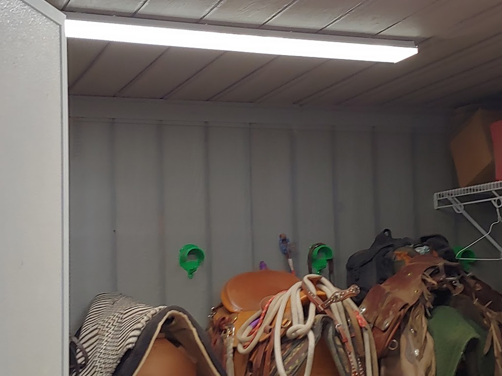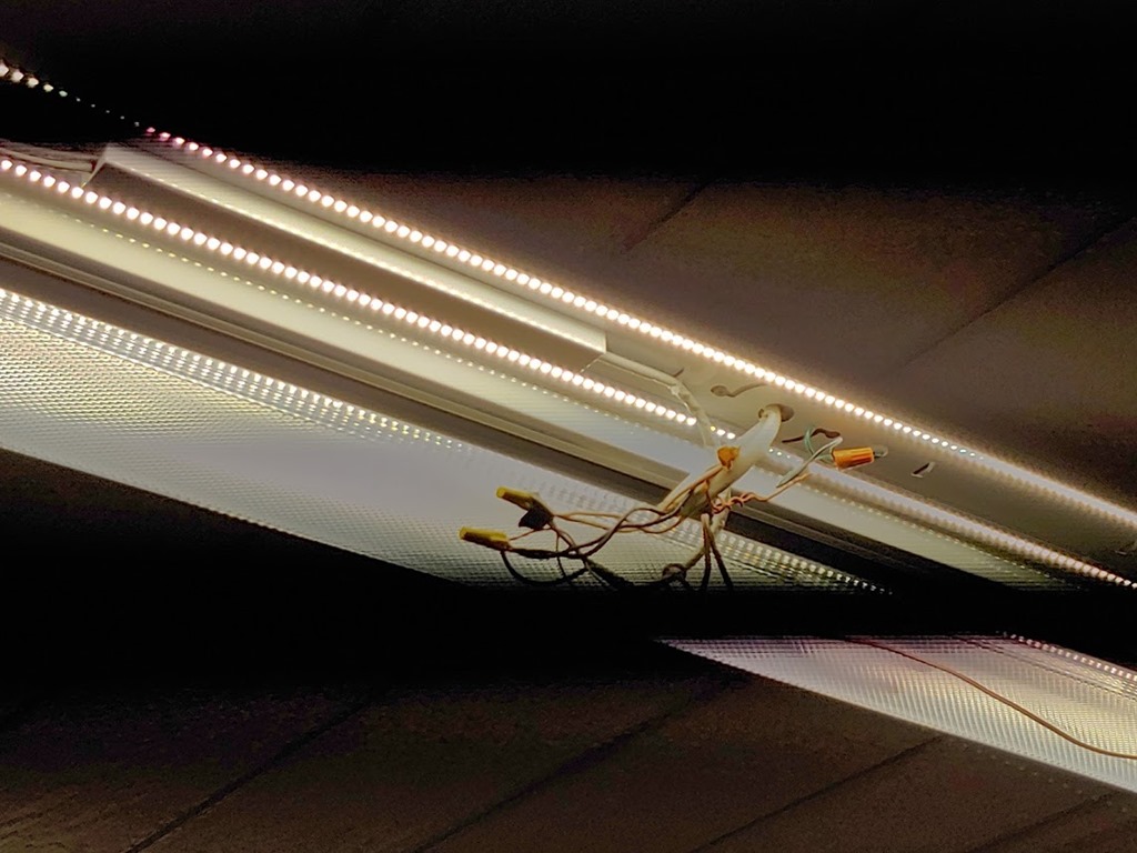 Someone asked about the lights I’d replaced in the barn, and they are LEDs. Here’s a shot of the two new ones I put in yesterday.