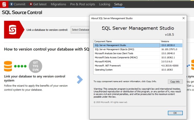 SQL Source Control – https://download.red-gate.com/checkforupdates/SQLSourceControl/SQLSourceControl_7.1.19.10595.exe