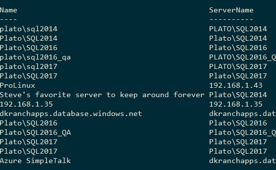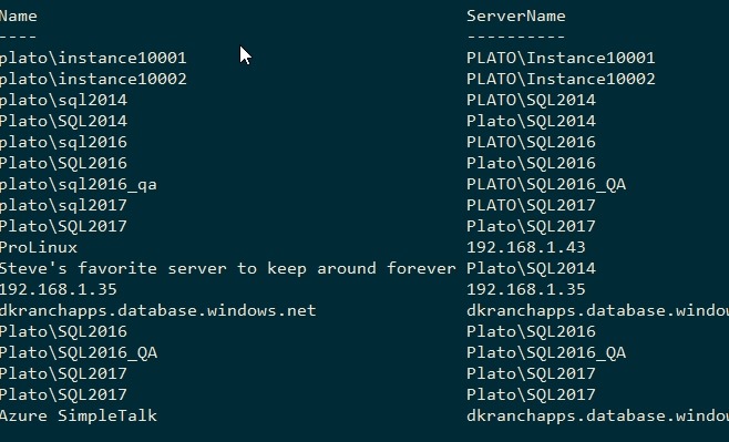 I was working with Get-DbaRegServer from dbatools and got some errors. When I dug through the errors, I noticed some interesting items listed in my server list. This is what I saw: