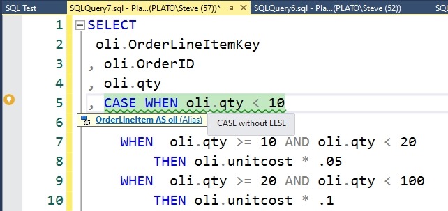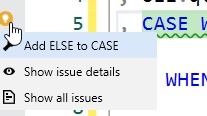 SQL Prompt 10.1 released recently, and one of the recent fixes is for an issue that we’ve denoted as BP012. This is an issue where there is a CASE statement in code, but no ELSE has been defined. An example of this is shown below: