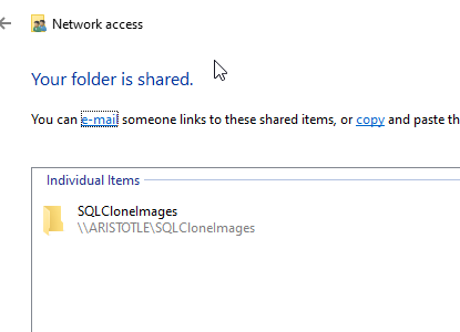 SQL Clone is installed and ready for work. The next thing for me is to set up a file share for the server.