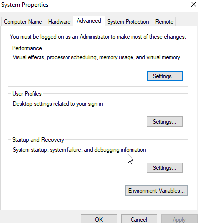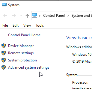 There are different ways to add things to the path, but the quickest for me on Windows 10, is to get to the properties of “This PC”. There is an advanced system settings here.