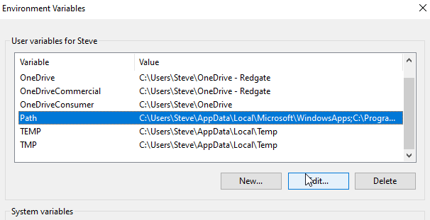 Clicking this shows me the various system variables, including the PATH.