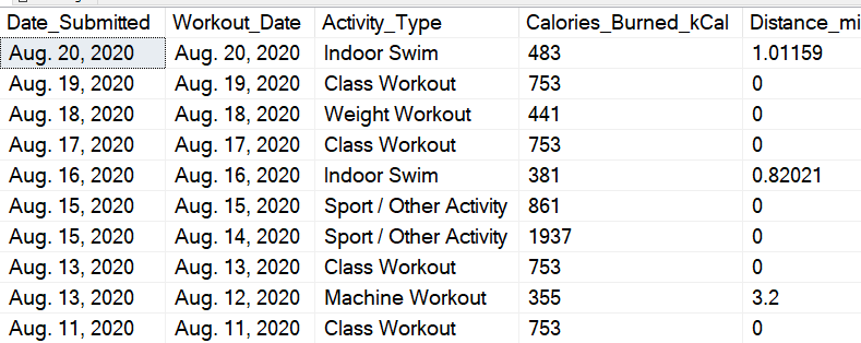 I got some data recently from an online service, MapMyRun.com, where I track my workout data. I’ve been doing this for years, but with some of the instability and security issues with services, I decided I need to periodically grab a copy of my data and load it.
