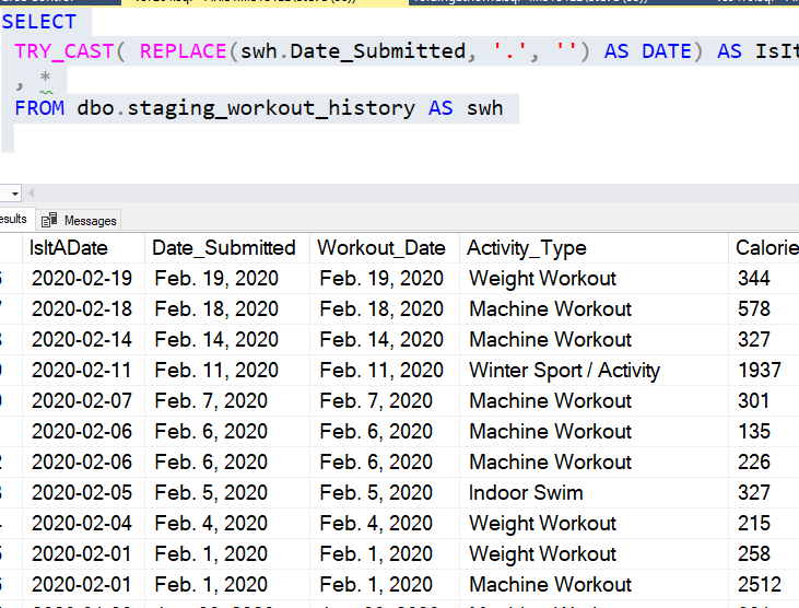 This converts all the dates in my column to the expected value. Now I need to do the same thing for other date columns, change TRY_CAST() to CAST() and I can import data.