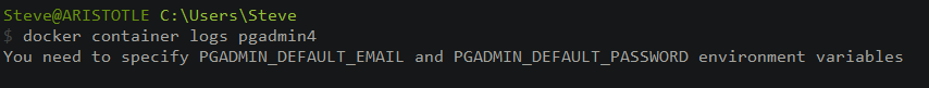 However, when I checked status, it would always be down. When I checked the logs (docker container logs pgadmin4), I’d see this: