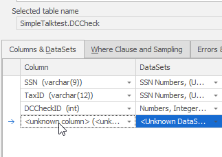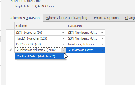 If I open that mask and add a new column, I get this, but I can’t expand the dropdown. All the columns in this table are masked, and data masker doesn’t know about the new one.
