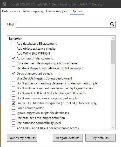 Recently I wrote about ignoring comments in SQL Compare. That seems like something I want to do in all my projects, so I went looking for how to set this as a default. It wasn’t obvious to me, but since I can ping the Redgate Software developers and support staff, I found an answer for this post.