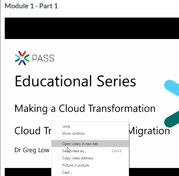 Pei, these instructions are specific to uses who are PASS Pro members, a separate paid membership unrelated to the PASS Summit. David, are you following the instructions precisely? you must start playing the video, and in Chrome and Chromium Edge I can right-click and Save Video As… Just bringing up the video won’t work.