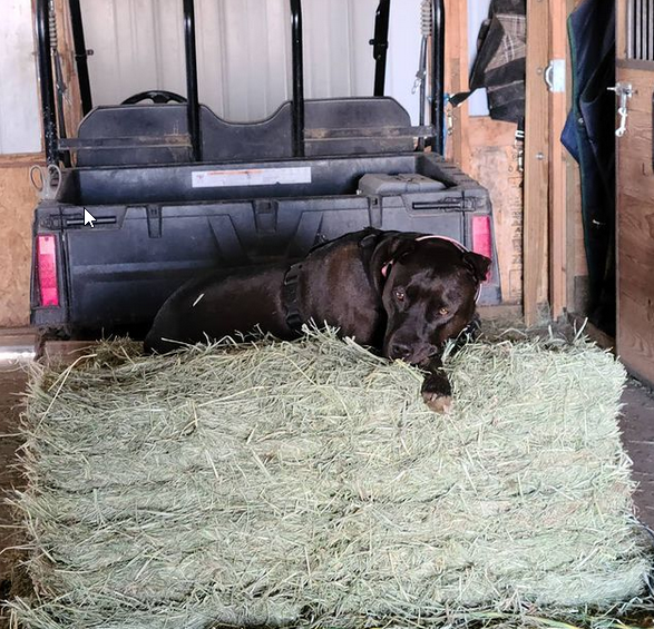For some reason, a dog decided to play king of the hill. I’ve seen this when we have a large bale out for horses, but never in the barn, and there is hay here all the time.