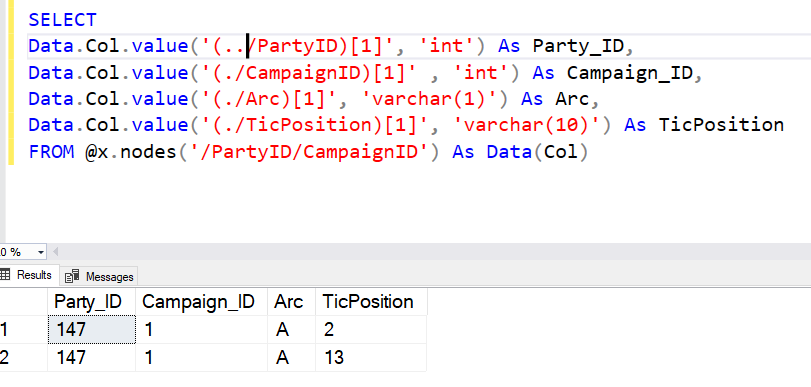 FROM @x.nodes('/PartyID/CampaignID') As Data(Col)