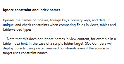 This post shows how to avoid having the SQL Compare script generate these changes and ignore the constraint issue.