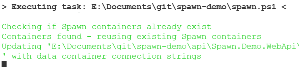 Part of this is using the Spawn service and a neat demo a few of the Redgate Software developers came up with. In this post, I wanted to just share a neat pattern that is in the demo.
